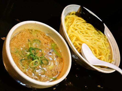 甘口でコク超激厚なつけダレ!サラサラ寄りで食べやすくも、ムッチリ高弾力な極太麺に過不足なく絡む!