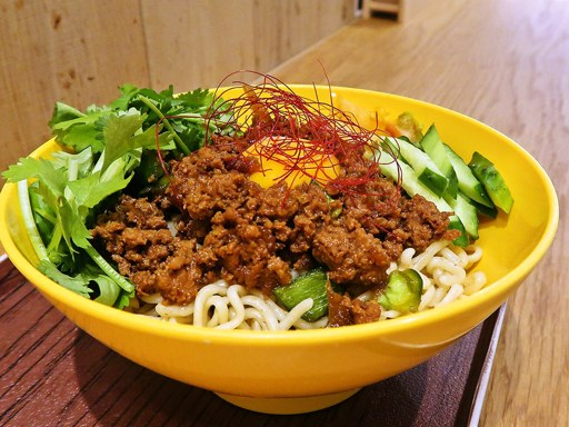 ラムひき肉の羊味&香りがガッツリ来つつ、カレースパイスが味わい整えた、こってりまぜそば!