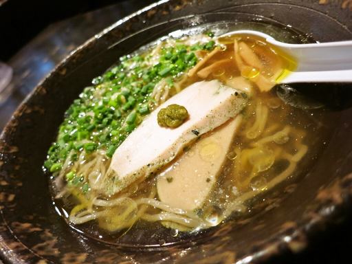 魚介出汁にオリーブオイルの風味残した冷たいスープに、ピリッとした柚子胡椒が主張。
