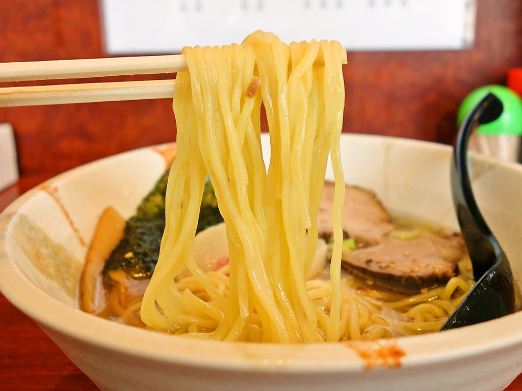 ムッチリプツプツ、ホッキリした中細でストレート寄りの麺。