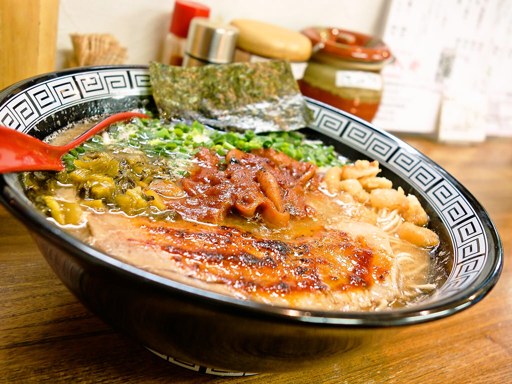 円やかサラサラ食べやすくも、旨味と濃度感じる理想的な豚骨スープに、激辛ホルモン!
