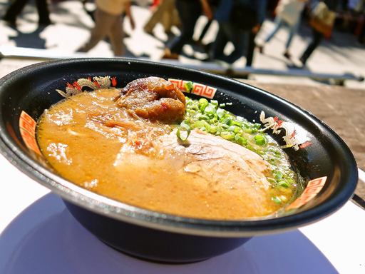 鰹節の香ばしさとニンニクのパンチ力がガツン!それを受け止めるしっかり旨いスープと麺!