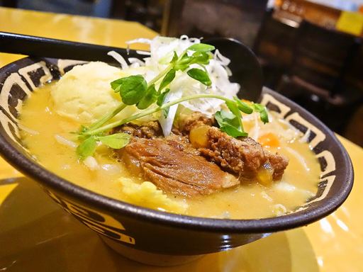 山嵐の癖ない濃密豚骨&背脂に、濃い味のタレとじんわりカレー感、そして激まで選べる辛さ!