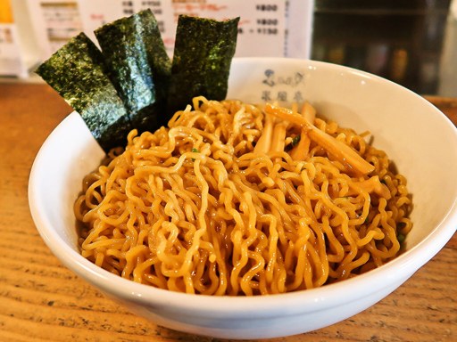 ほんのりビターでシャープで円い味わいに、麺の食感しっかり楽しめるタレの質感も嬉しい極太汁無し!