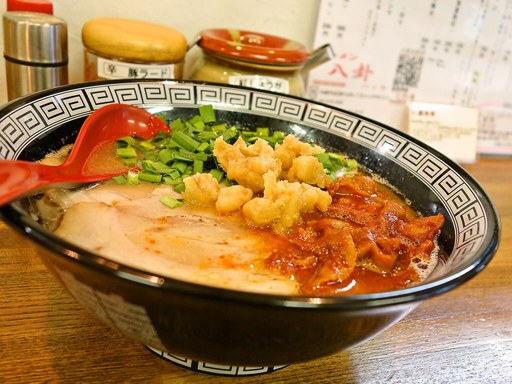サラリ円やかな豚骨スープに、舌をつんざく刺激強烈な激辛ホルモンの組み合わせ!