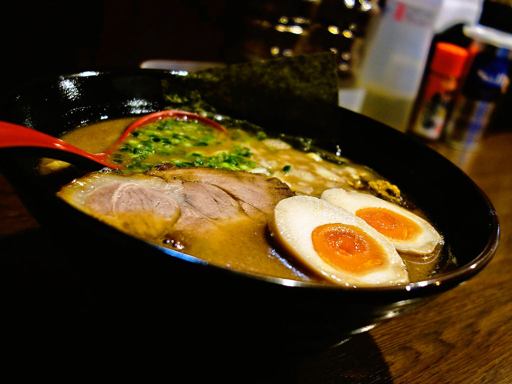 円やかサラサラ食べやすくも、旨味と濃度感じる理想的な豚骨スープに、激辛ホルモン!