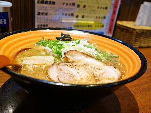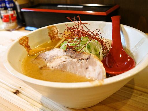 超ミルキーな牛骨の出汁感がぶわーっと来る一杯!極細麺とトッピングで九州っぽさも有り。