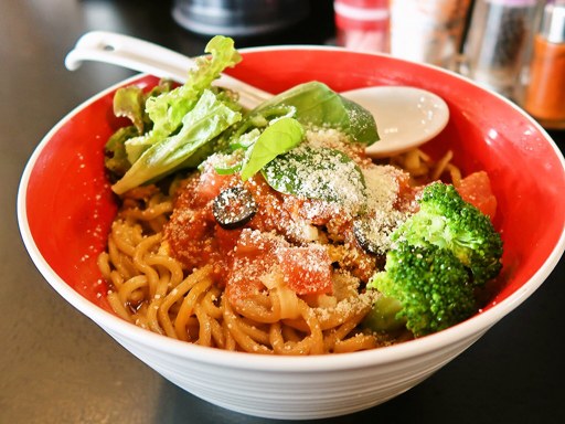チーズのパンチと、トマトソースのスッキリしつつ強い旨味が交わる!レギュラーで食べたいまぜ麺!