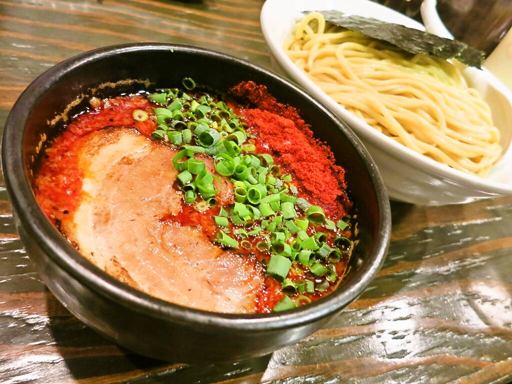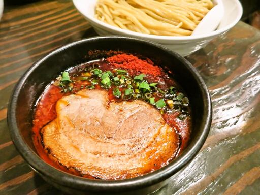上質な背脂と円やか豚骨のサラサラつけダレに、冷たい平打ち麺!スープ割で豚骨感UP!