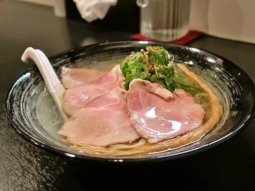 見た目通りの澄んだ味わいの中華的スープ!超あっさりながらスープ合うツルピタな平打麺も旨し!