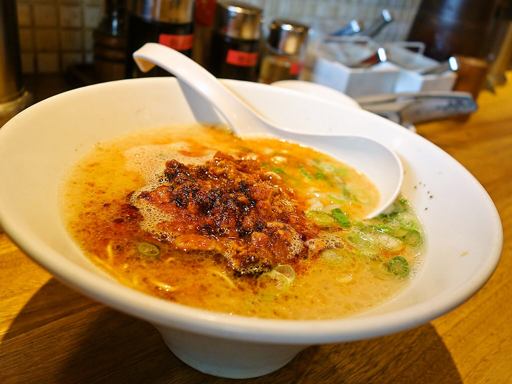 豚骨主体のサラサラクリーミーなラーメンスープに、スパイスの刺激がよく合う一杯!