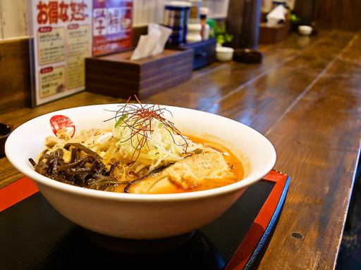 あえて匂い残した円やか豚骨に、ビシっとキマった味噌ダレと香辛料が交わる!辛さはそこそこ~。