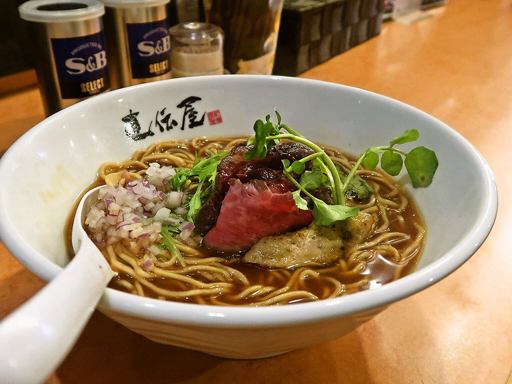 スッと上品な、全く癖ない牛骨スープに、甘口寄りの醤油味!トリュフの香りとフォアグラも!