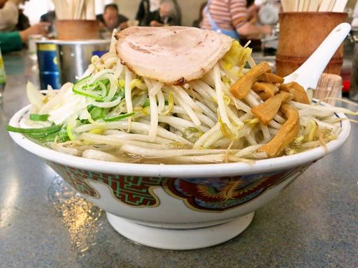 モヤシの山に、マイルド甘口な味噌味、唐辛子がピリリと締めるスープ!旭川の味噌ラー店。
