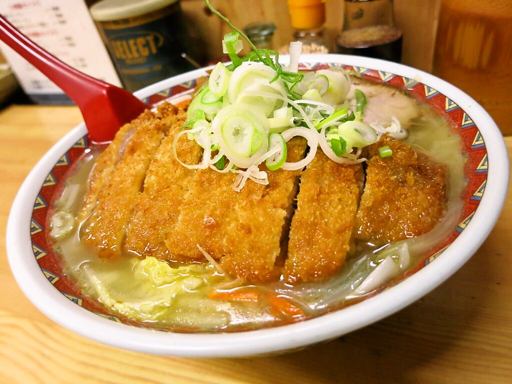 定番函館塩ラーメンに、甘ダレのロースカツがドドンと!スープにも甘ダレ混じって変わる味わい。