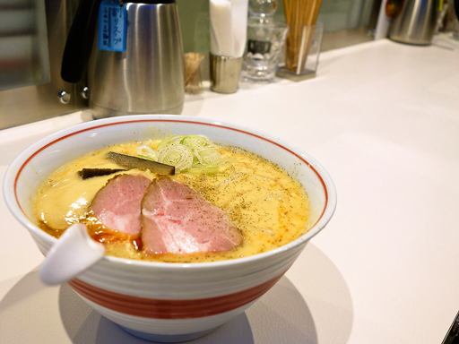強めに落ち着く味噌ダレの味わいに、豚骨出汁と甘口のAWAが交わる個性的な一杯!