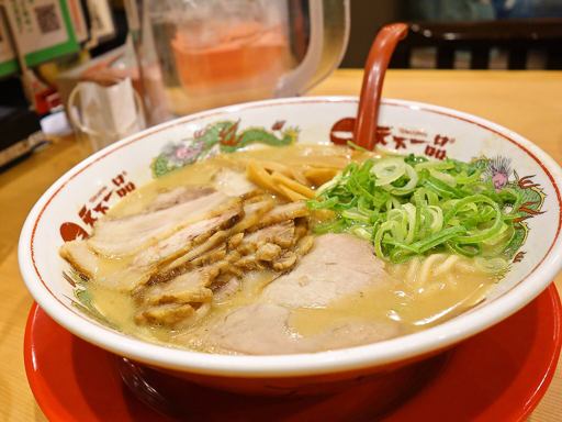 天一独特の濃厚ドロドロスープに、広げれば丼覆う量のこってりトントロ!超ヘビー級な一杯!