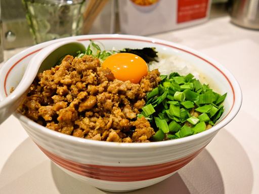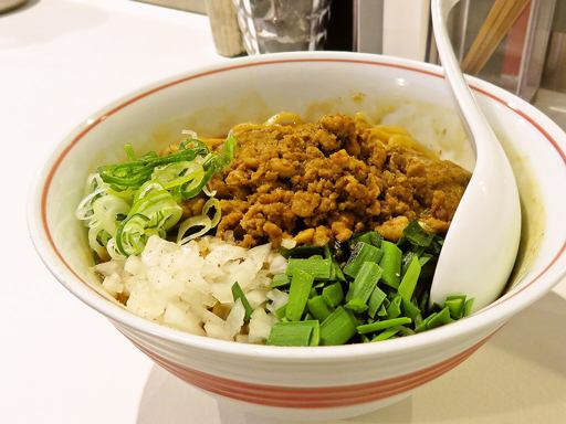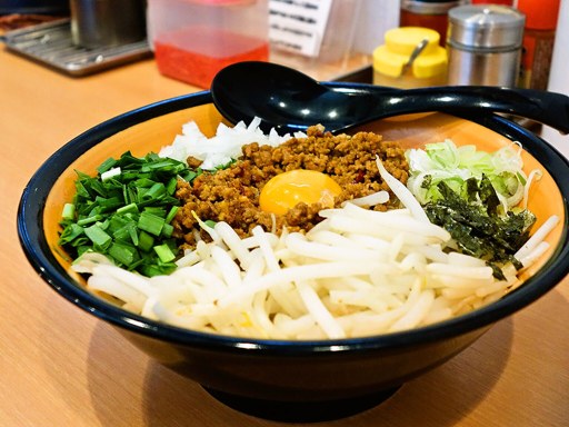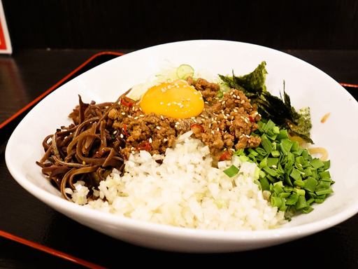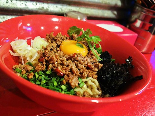 味付け、油、こってり感全てが絶妙!程よい辛さに、ラストの追い飯もniceな汁無し麺!