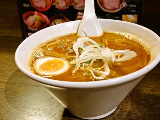かなり強めな味噌味にほんのりカレー感ある、濃密トロトロスープの一杯!