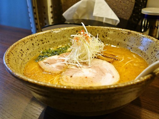 濃厚豚骨&トマト交わるサッパリスープ、パスタ向け小麦の麺、手間の掛かった多種類の具材!