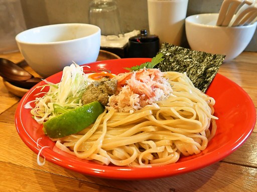 カニ出汁と鶏豚白湯ガッツリ!濃いけど円めで濃厚なコクあるつけダレを自家製の麺がしっかり纏う!