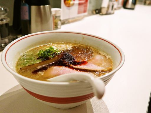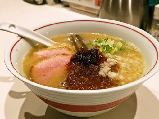 以前よりあっさりで万人向けかつ、呑み〆にも耐えうる強度ある豚骨和風白醤油に、シャープな辛味プラス!
