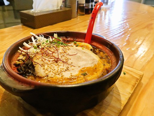 豚骨がメインの味わいに、魚介の旨味が隙間埋めた濃厚スープを、辛味がアクセントとして引き立てる!
