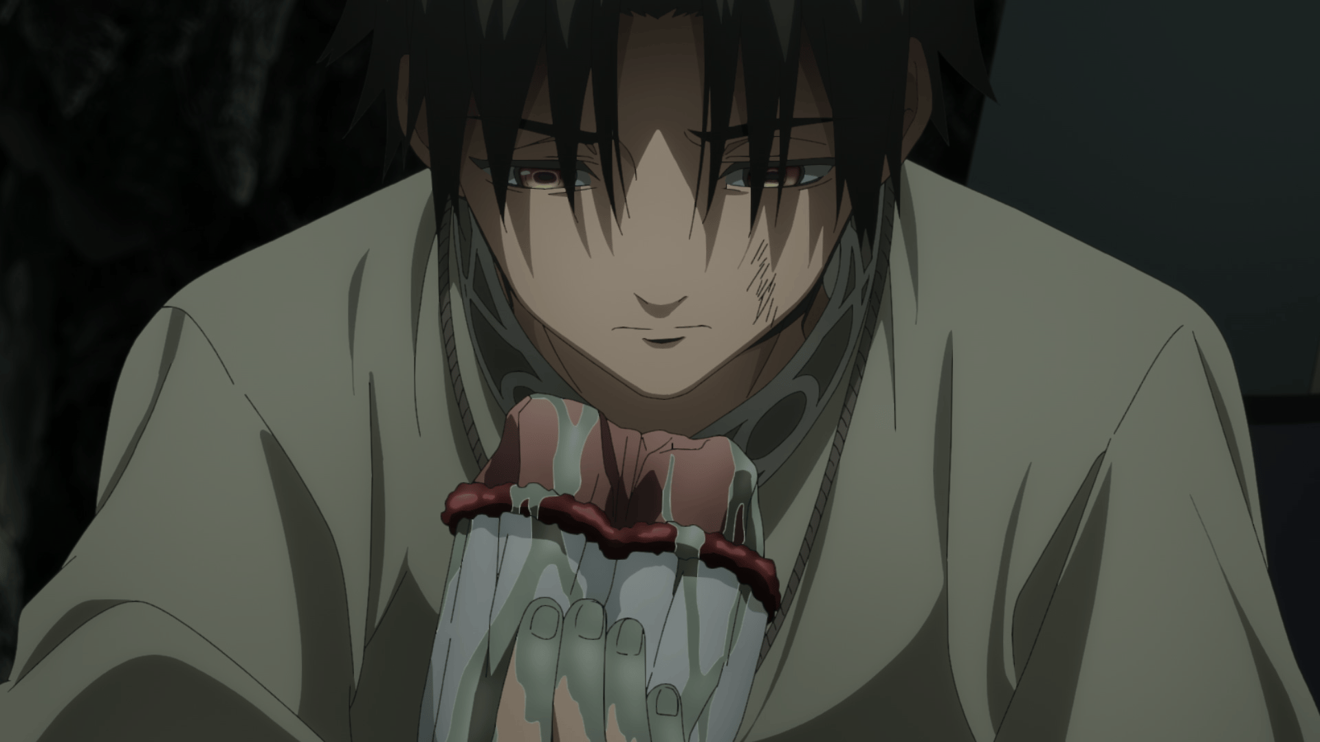 並みはずれた身体能力を持つ高校生・虎杖悠仁。祖父が死んだ夜に呪術高専一年の伏黒 恵と出会う。彼は、虎杖の持つ“呪物”を回収しに来たというが、ちょうどその“呪物”は虎杖の先輩らによって封印が解かれていた。“呪物”が引き寄せた、呪いの化け物に襲われる先輩たち。そこに虎杖と伏黒が駆けつける。