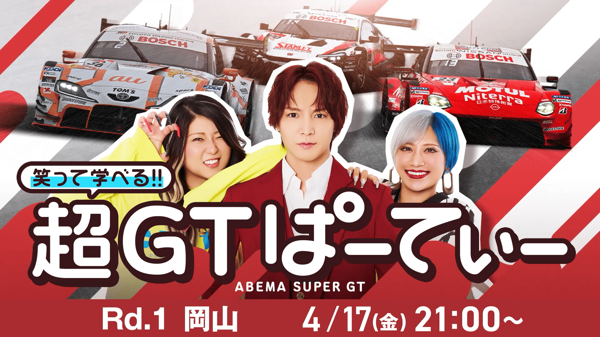 初心者でも笑って学べる! SUPER GTの番組を無料放送!見逃し放送も注目映像も全て無料!MCにお笑いトリオ・ぱーてぃーちゃんを迎え、笑って学べる番組を生放送でお届け!各大会の注目シーンをまとめたダイジェストを現役ドライバーと監督を迎え一緒に振り返る。初心者にもわかりやすくレーシング用語の解説や暫定順位を表示するオリジナルテロップを添えたレースダイジェストに加え、独自の選手取材や、サーキットでしかできない体験などのオリジナル企画を織り交ぜ、75分のバラエティに富んだ内容を放送!