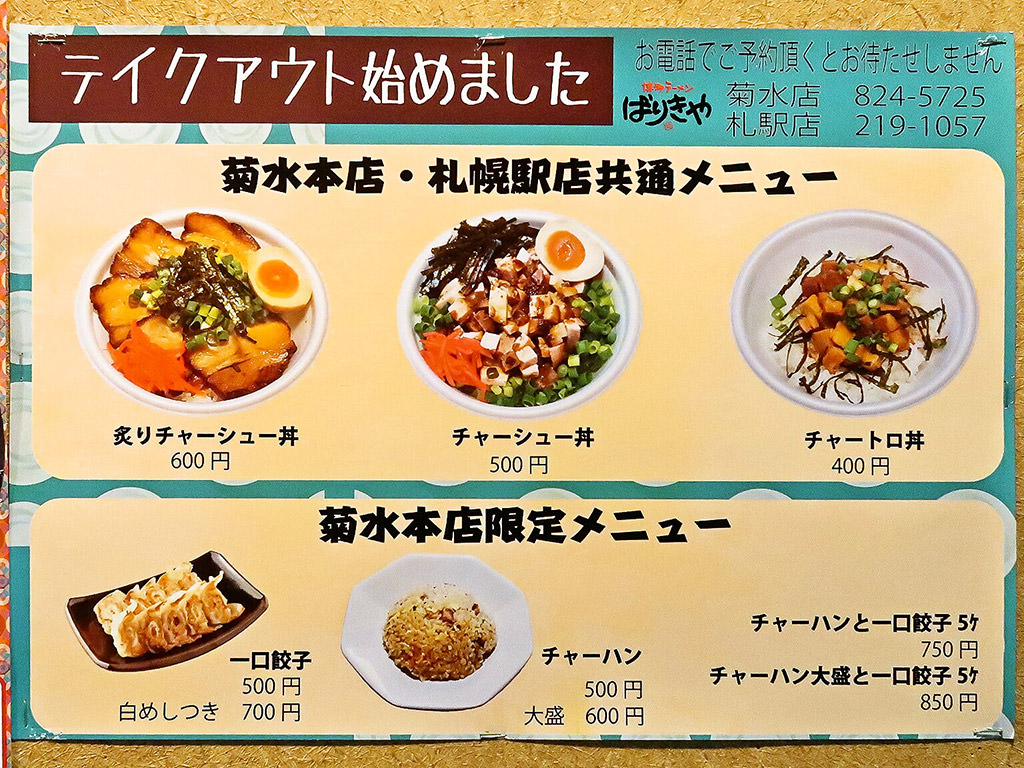 キャパシティの関係で、菊水本店よりもメニュー数は少なめ。