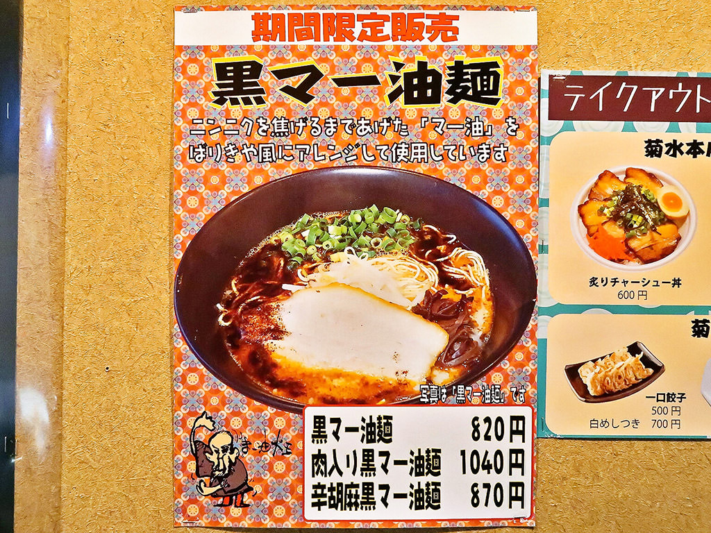 しかしもちろん定番の豚骨ラーメン2種と醤油ラーメン、更に期間限定メニューは網羅。