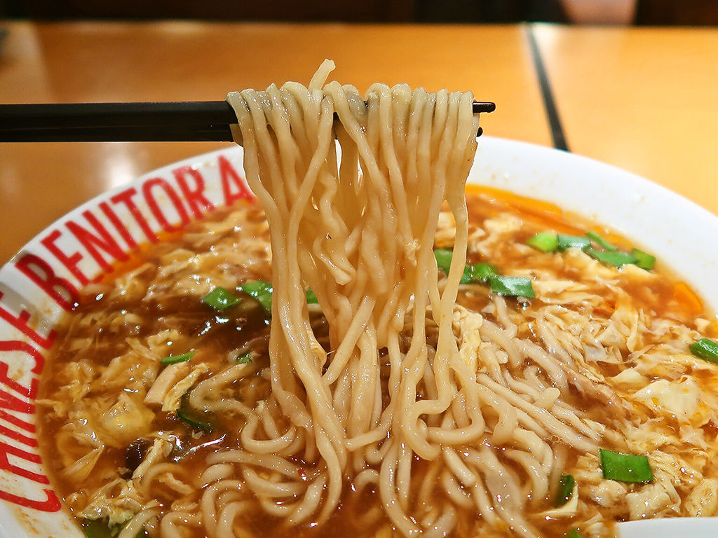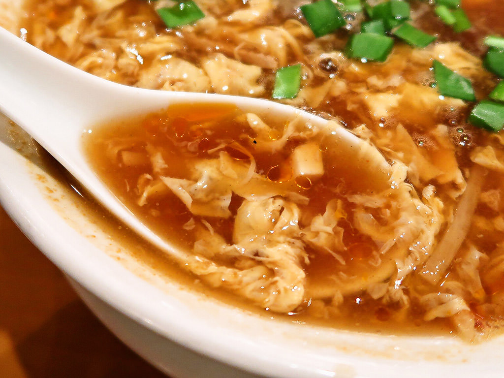 トロミ結構あるスープは、酸辣湯麺の名前通りに、酸味がかなり強めに効いてますよ~。