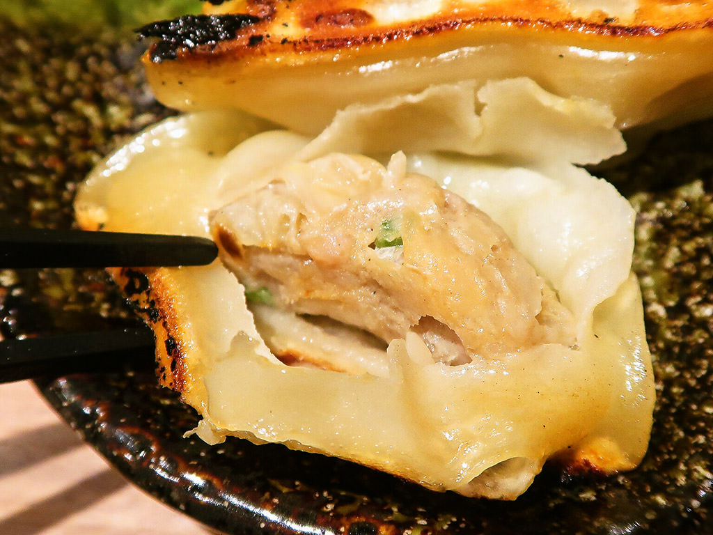 餃子はちょいと厚めな皮に、野菜のシャリシャリ歯ごたえと