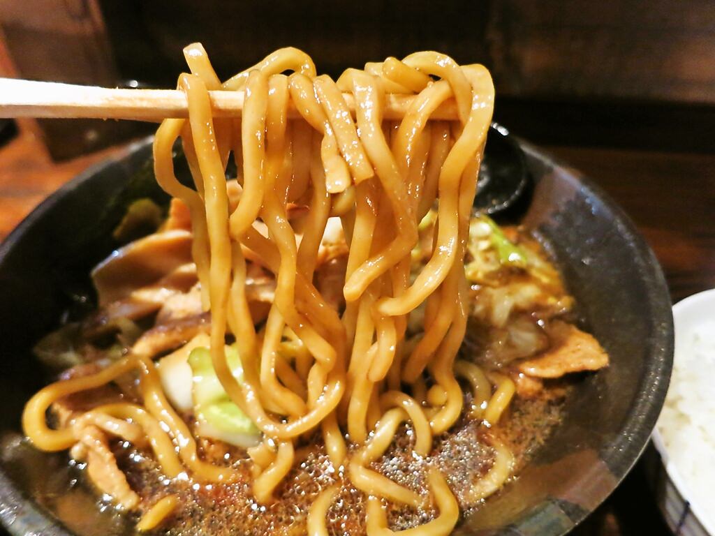 うどんのようなモッチリ多加水極太麺は醤油ダレ纏い纏いでモグモグ頂く感じ。