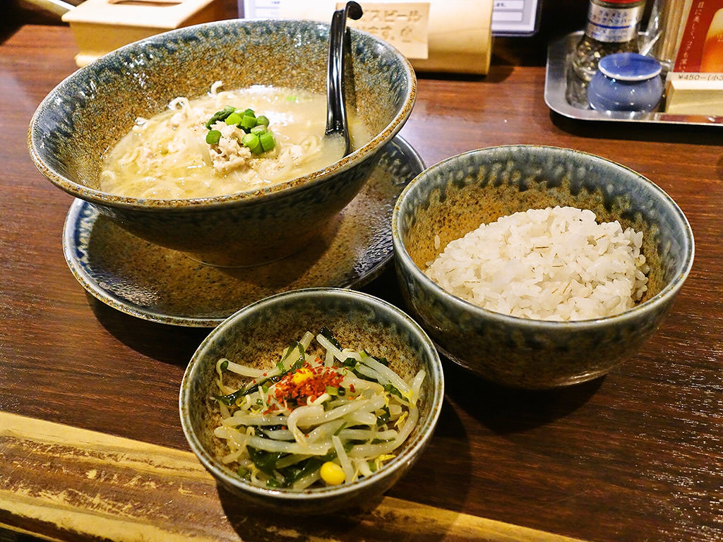 ラーメンが小サイズの代わりに「ナムル」と「むぎごはん」がセット!