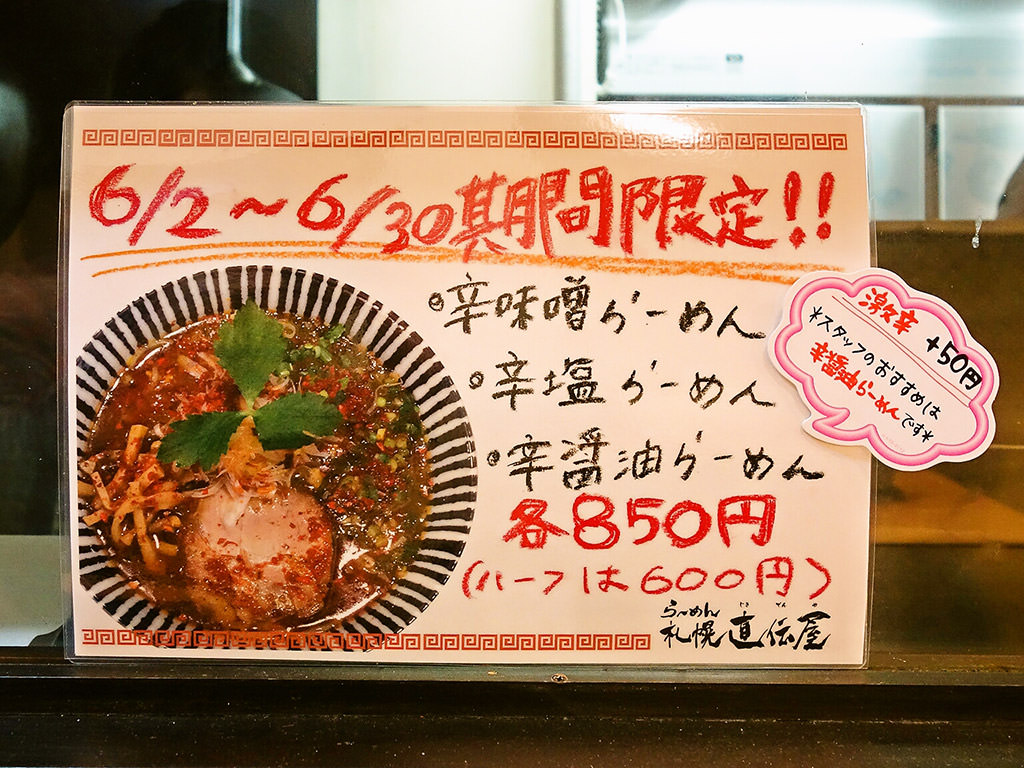 約一ヶ月半ぶり、二回目の訪問!「らーめん札幌直伝屋」さんです。
