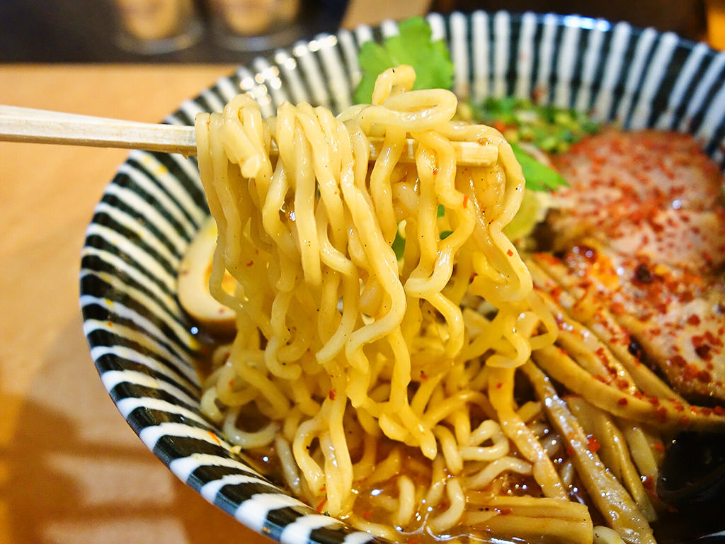 強いモチモチ感に、噛んだ時のカッチリとした歯ごたえ、小麦の旨味しっかりでナイスなやつ!