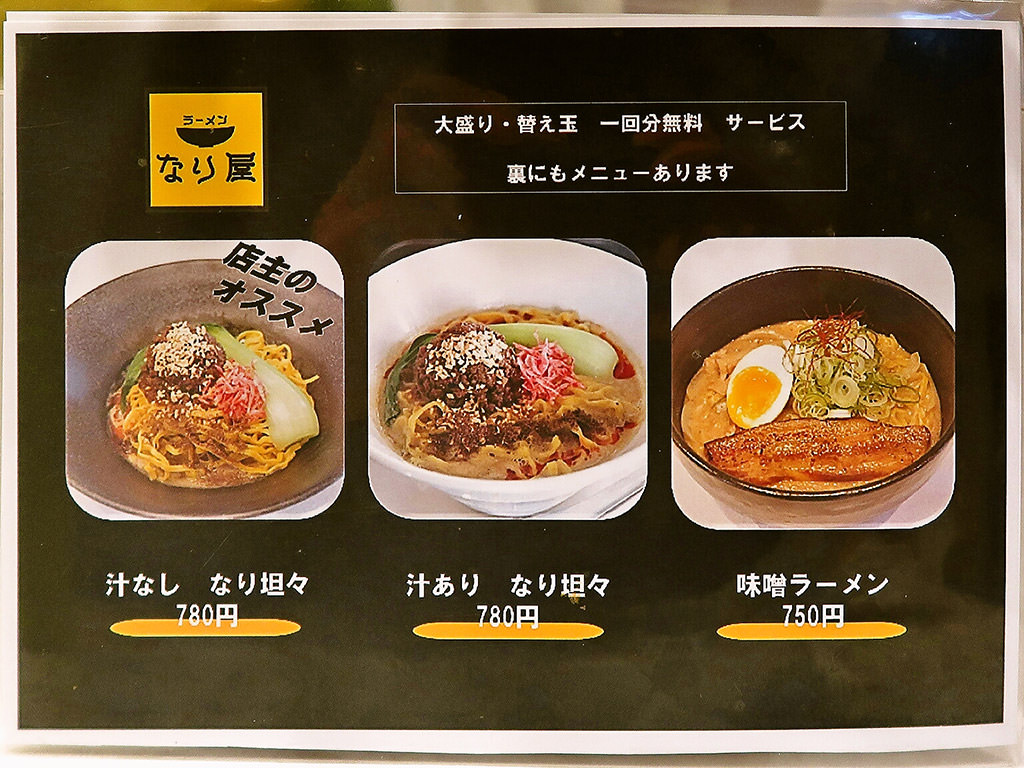 [汁無し担々麺・汁有り担々麺・味噌ラーメン] と、立地にしてはかなり思い切ったラインナップ!