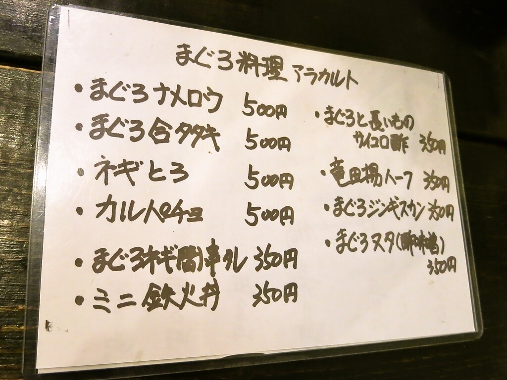 メニュー。グランドメニュー撮り忘れちまったのは不覚です。