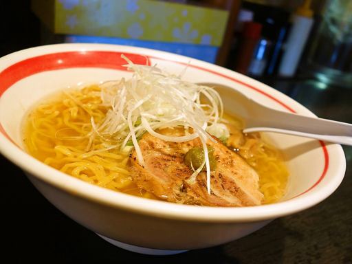 豚骨・鶏ガラ・和出汁ベースでサラサラ、塩気強めの塩ラーメン。醤油味だと印象違うかも~。