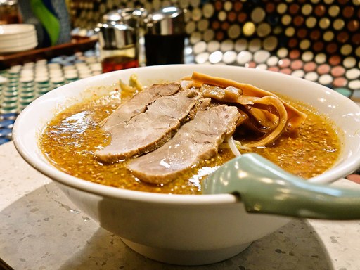 スッキリコクある豚鶏スープ&背脂&マー油&スパイス、この個性あるメンツが絶妙に交わる凄い一杯!