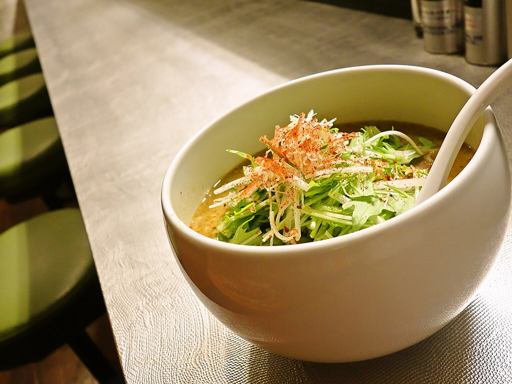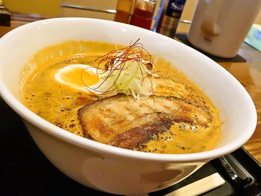 豚骨主体のサラサラクリーミーなラーメンスープに、スパイスの刺激がよく合う一杯!
