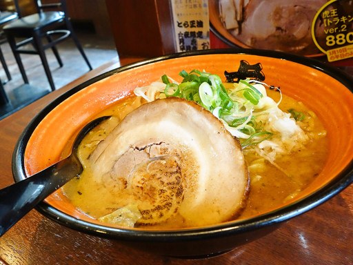 山嵐の癖ない濃密豚骨&背脂に、濃い味のタレとじんわりカレー感、そして激まで選べる辛さ!