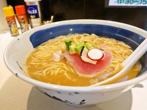 強めのサカナ感ながら嫌なクセは無く、強い旨味が調和した至高のスープ!具材も相性バッチリ!