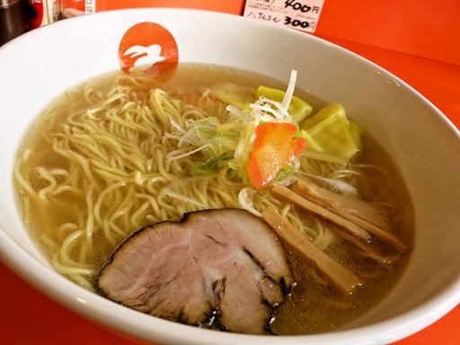 鰹出汁のあっさり味のスープに、ツルツルのストレート麺。手作りワンタンもいいね。