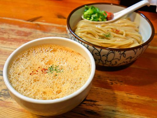 マグロ濃厚豚骨醤油味、石器で超グツグツ提供つけ麺!現在は手稲でお馴染み海老つけ麺に変更。