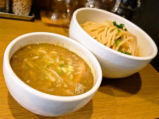 鮪出汁に動物系のミルキーさ主役な一杯。現在は海老つけ麺&ラーメンのお店にリニューアル。