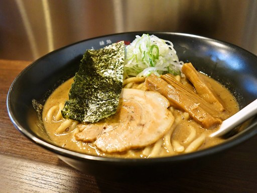 超ミルキーな牛骨の出汁感がぶわーっと来る一杯!極細麺とトッピングで九州っぽさも有り。