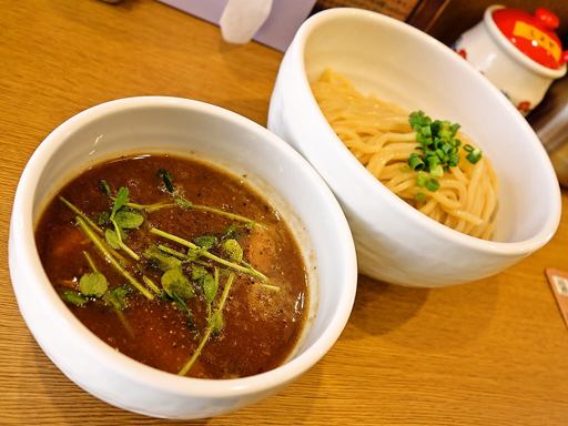 ムチムチゴリゴリ、超強いコシある極太麺に、基本押さえた魚介豚骨のトロトロつけダレ。