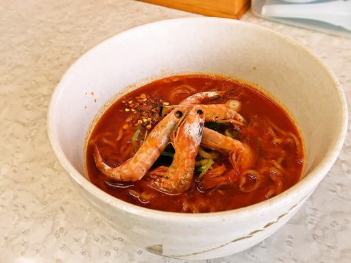 全体シュッと纏まった、こってりだけど落ち着きある味わいの、独特~な海老辛味噌ラーメン!